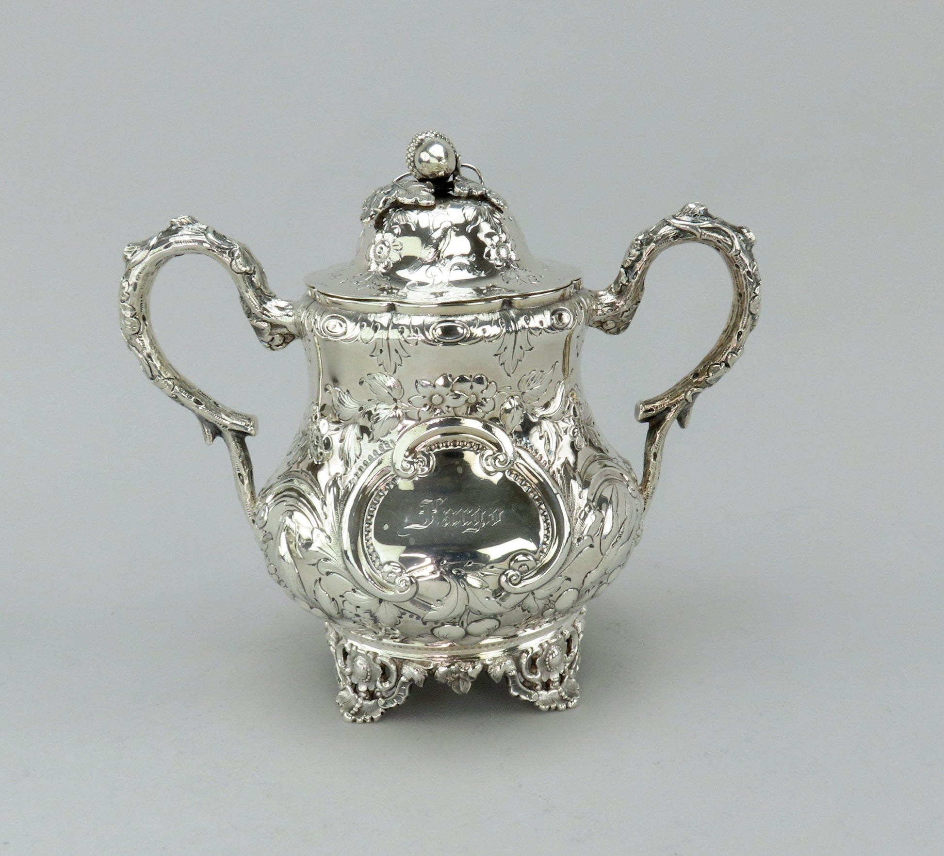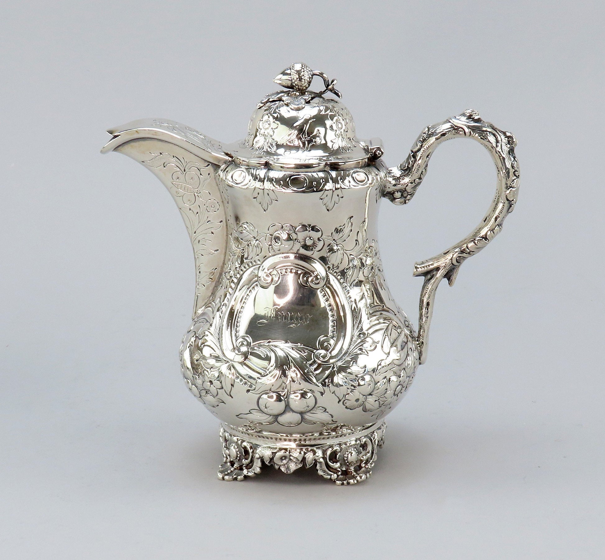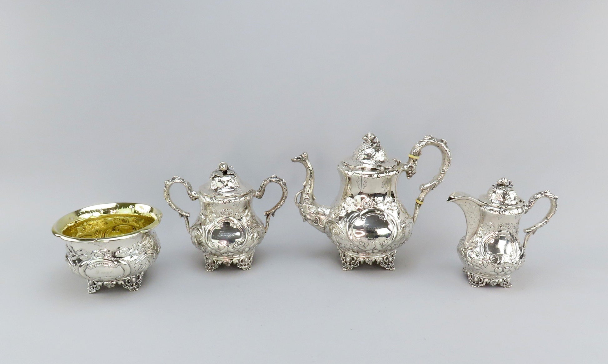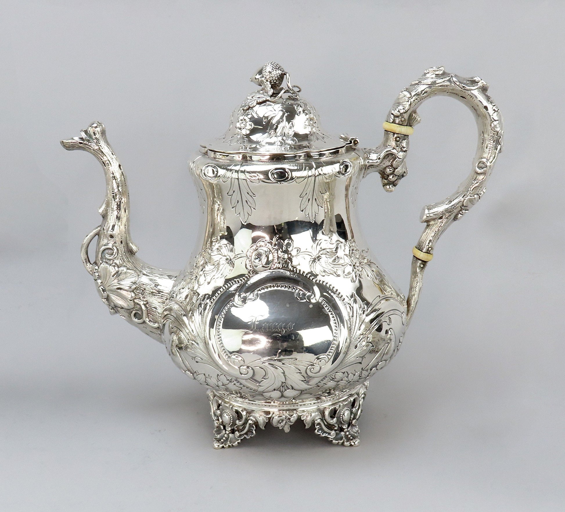 c1850s Gorgeous American Coin Silver 4 Piece Tea Set Fargo Family Monogram