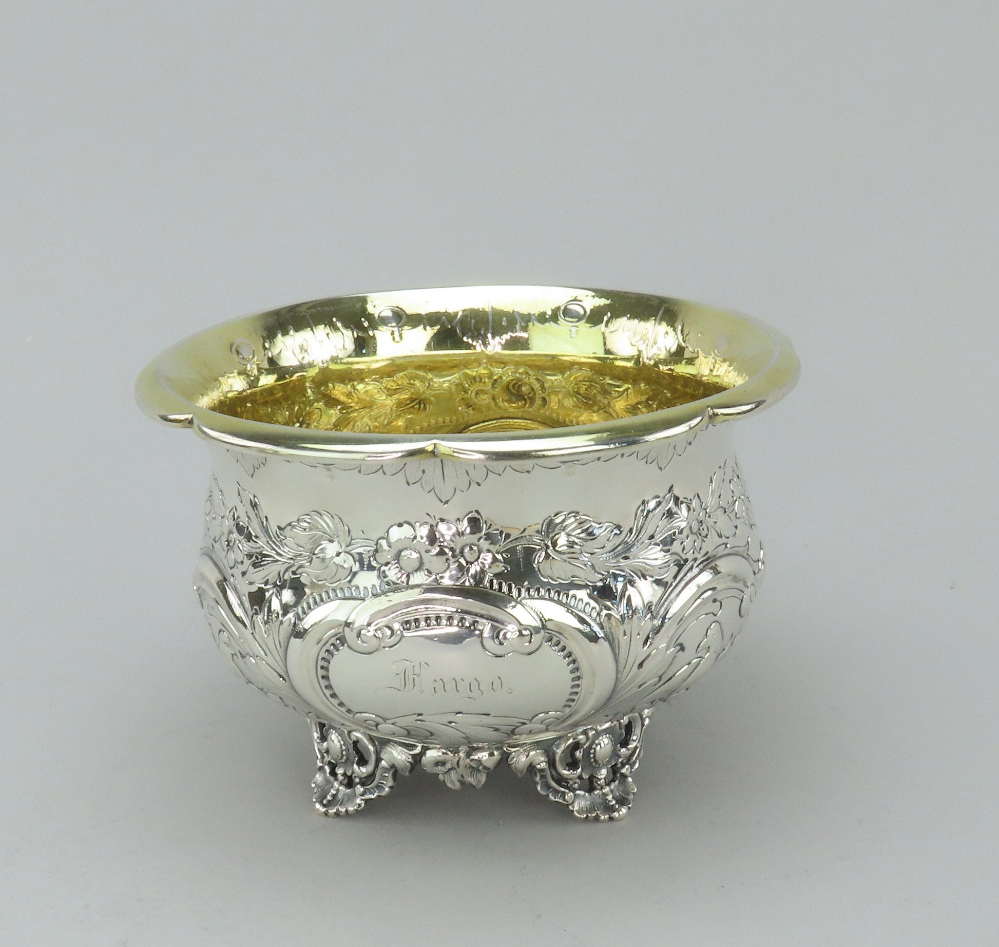 On one side of each piece in the set, there is a large cartouche that has been monogrammed “Fargo”. There is no doubt in our mind that the set was owned by the family of William Fargo, co-founder of the freight company that became today's American Express as well as the financial institution Wells Fargo, likewise still a household name. This remarkable set came to us in a lot with several other pieces owned by this historic family, including a christening cup engraved with a presentation to Edwin M. Fargo and the date 1861. Edwin Morgan Fargo, born 1861, was one of William Fargo's eight children, though unfortunately he would die quite young, in 1865. So although the rest of the silver items in the lot are only engraved with the surname, we are quite confident of their provenance with the historic Fargo family. You can view the listings for these items, which are all extraordinary pieces of silver in their own right as would be expected from the attachment to such a prominent name, by searching “Fargo” in our store.