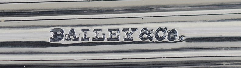 The ladle is stamped with the maker's mark for George Sharp, as well as the retail mark for Bailey & Co. George Sharp made silver items for retail by Bailey & Co 1852-1866.