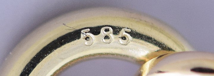The clasp is stamped 585 for 14 karat gold. We have tested the chain as well, and guarantee it to be 14 karat gold.