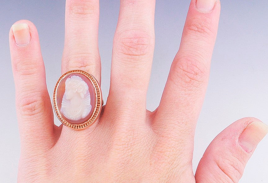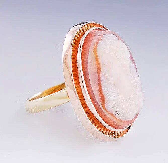 c1860-1880 Elegant Victorian 14k Gold & Carved Hardstone Cameo Ring
