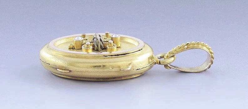 c1860s-1870s Lovely Victorian 18k Gold & Seed Pearl Photo Locket Pendant