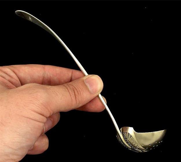 c1870 Antique Sterling Silver Whiting Matte Finish Straining Pierced Ladle