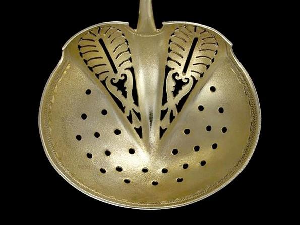 This ladle has a matte finish throughout the entire piece. The bowl has a light gold wash. The interior of the bowl is beautifully pierced. The condition is absolutely perfect. There are no breaks, no splits, no cracks, no repairs, no monogram removals and no problems of any kind.