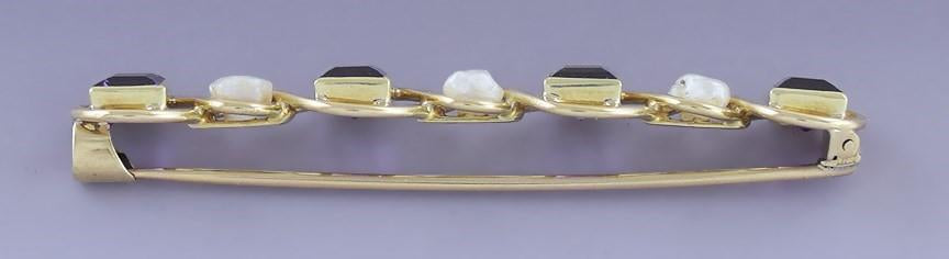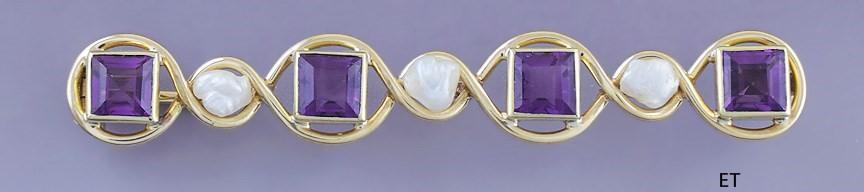 c1880s Wonderful 14k Gold Amethyst Pearl Bar Pin / Brooch