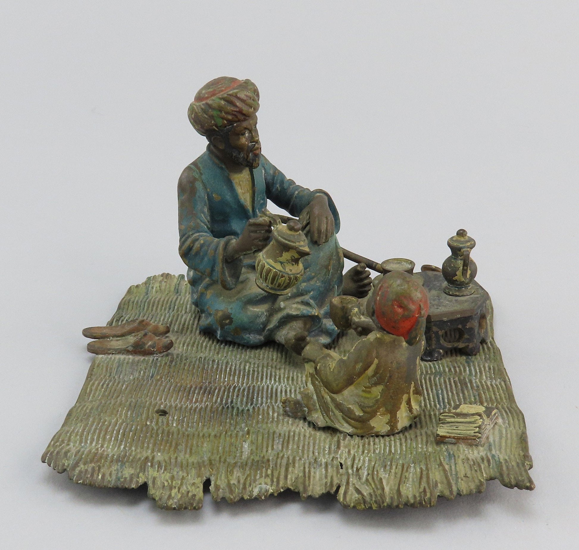 c1890 Antique Austrian Bronze Middle Eastern Scene Serving Tea Man w/ Boy