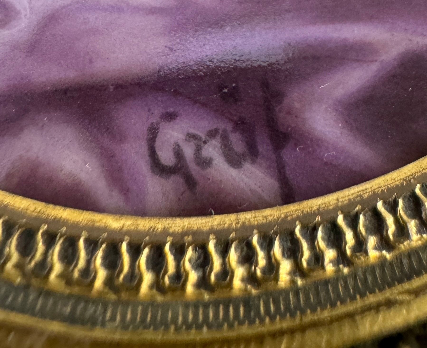 This piece is in excellent condition. The portrait is in great shape, with no chips or losses to the paint. The gilding of the bronze has only the most minor insignificant wear. The hinges function well and the lid shuts nicely. No breaks and no repairs.