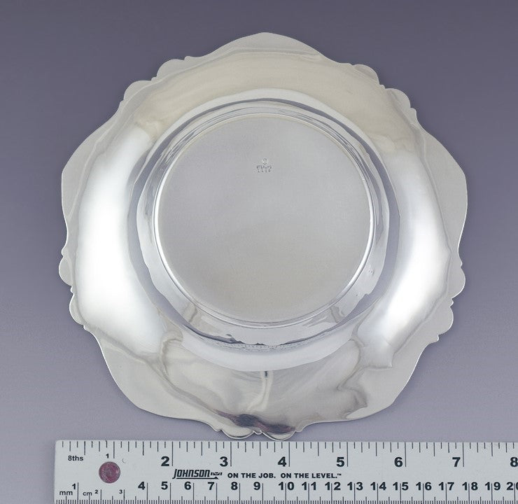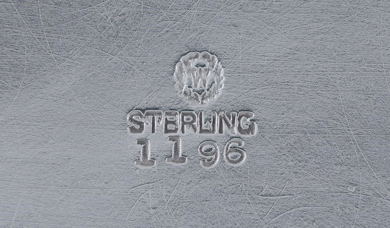 The underside of the bowl is stamped sterling as well as the Woodside Sterling Co maker's mark and the number 1196.