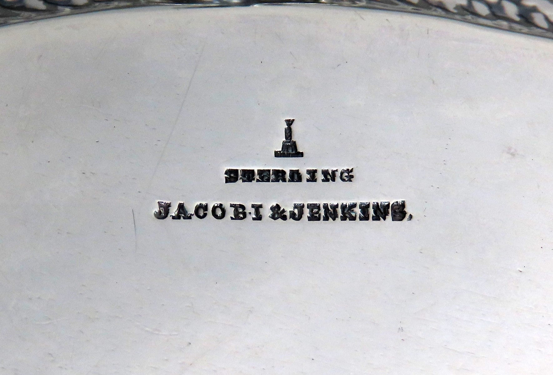 This piece is stamped with the maker's mark for Jacobi & Jenkins, as well as sterling.