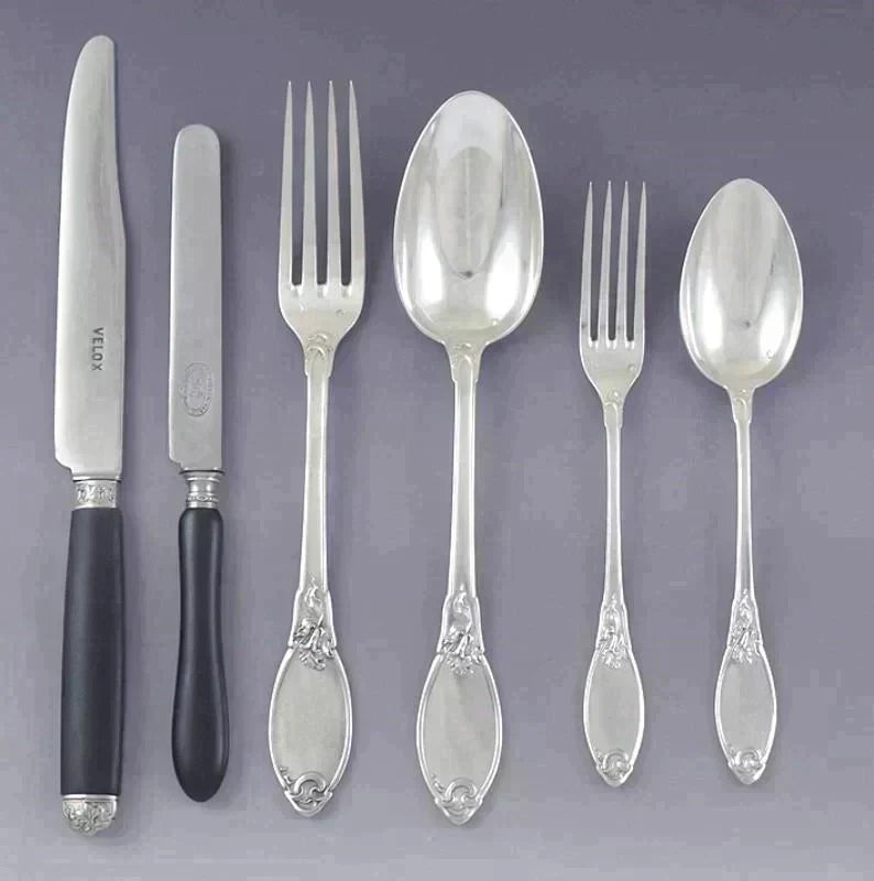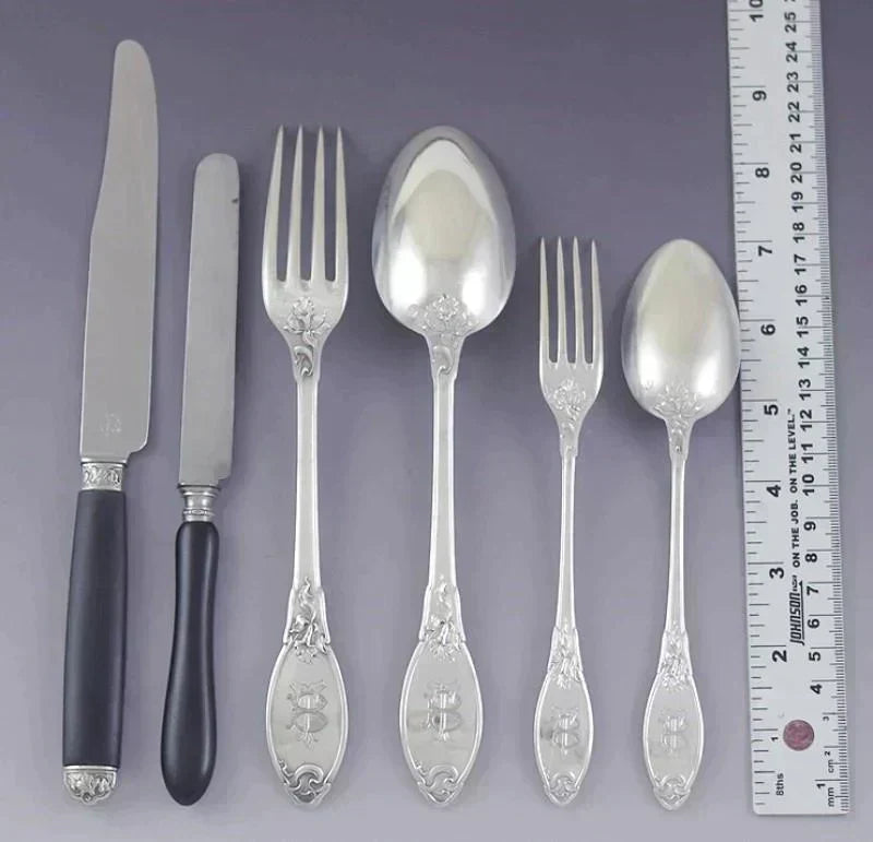 c1900 French 950 Silver 83pc Art Nouveau Flatware Set Serves 12