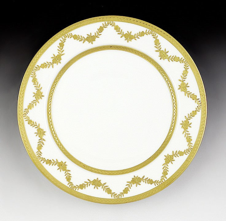 c1907-1919 Set of 12 Limoges Gilded Porcelain Dinner Plates Tressemann Vogt