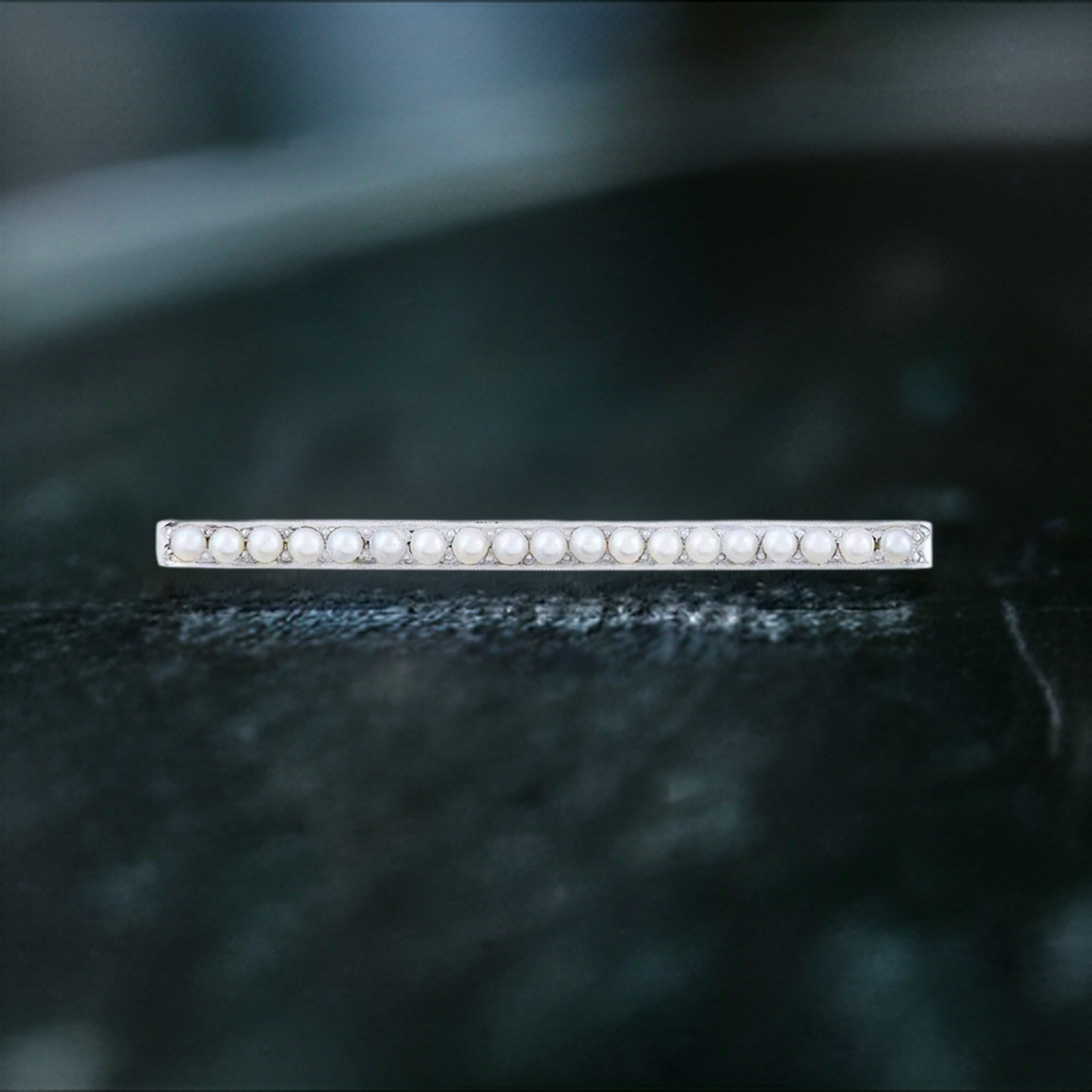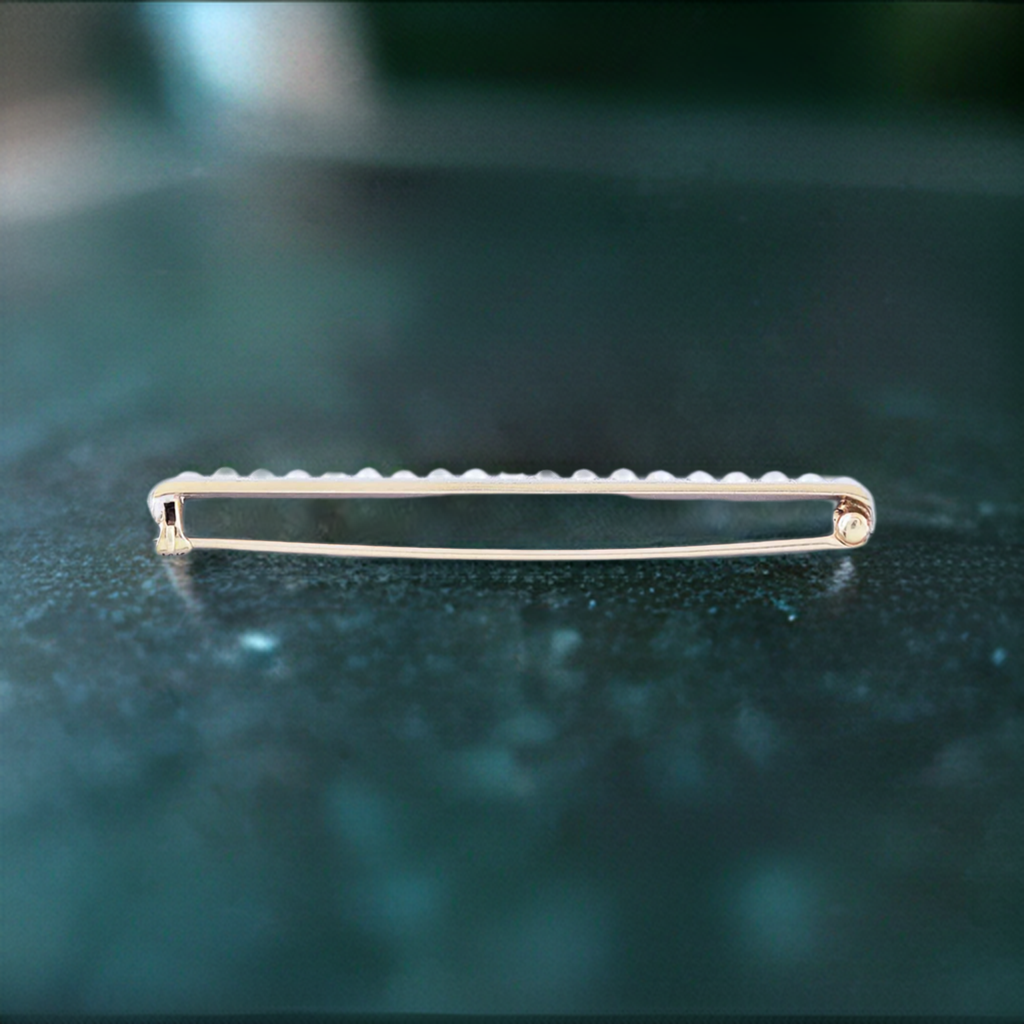 c1910 Lovely 14k Gold Platinum Seed Pearl Bar Pin / Brooch