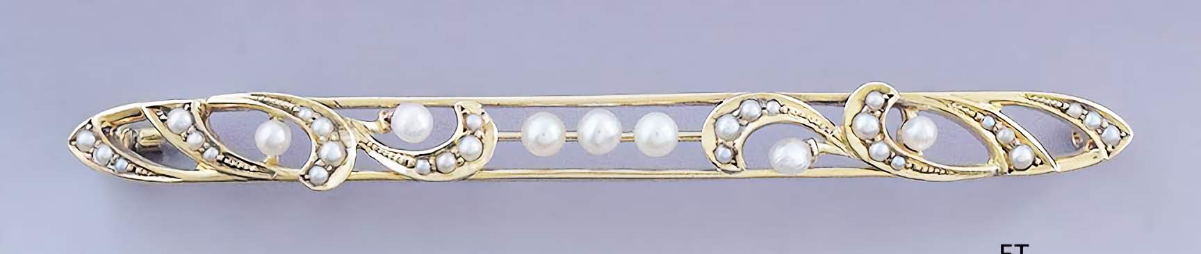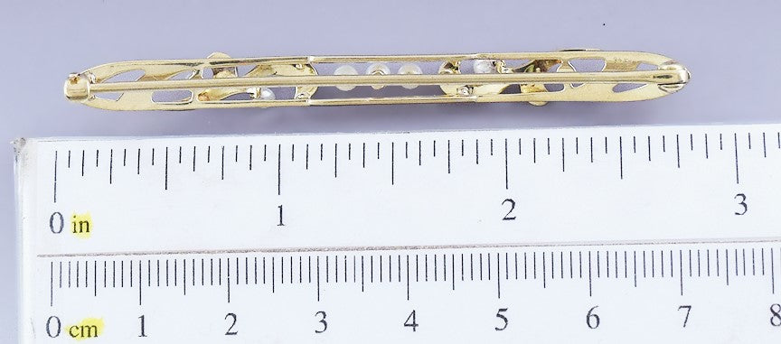 c1920s-1920s Stylish 14k Gold Seed Pearl Bar Pin Brooch