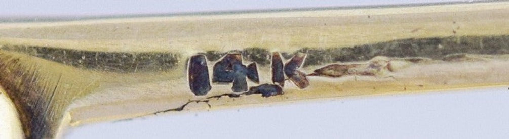 The pin is stamped and guaranteed 14k, on the stem near the hinge of the clasp.