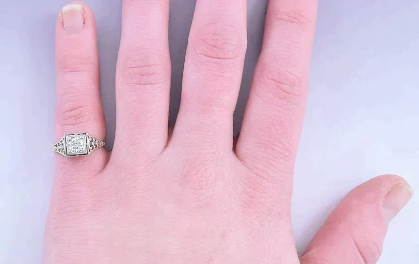 vintage American piece, dating to around the 1920s-1930s. The ring is set with a