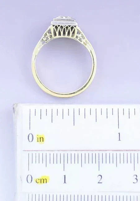 c1930 Classic Vintage 18k Gold & VVS Diamond Filigree Ring sz 5 1/2