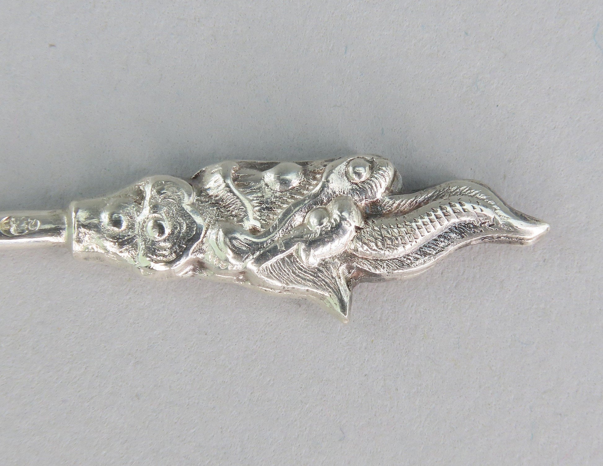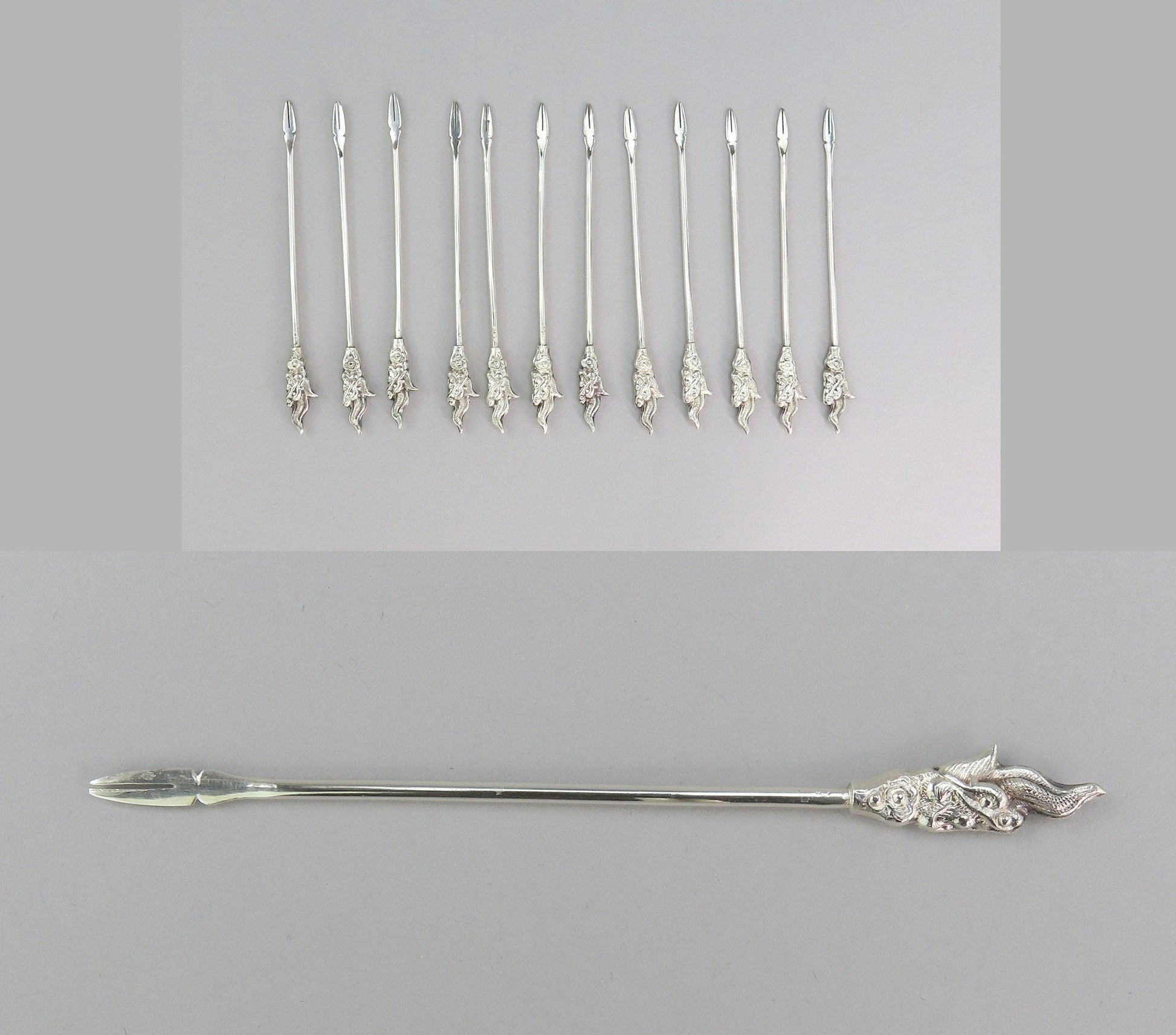c1930s Vietnamese 900 Silver 12 Food Picks w/ Stand Dragons
