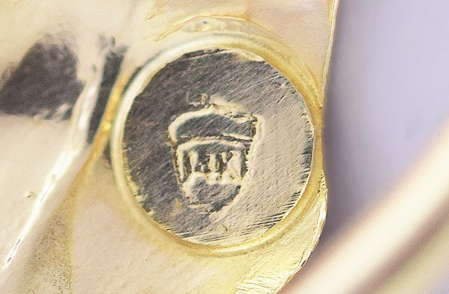 The pin is stamped on the back with 14k, inside an acorn shaped mark.