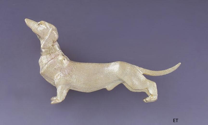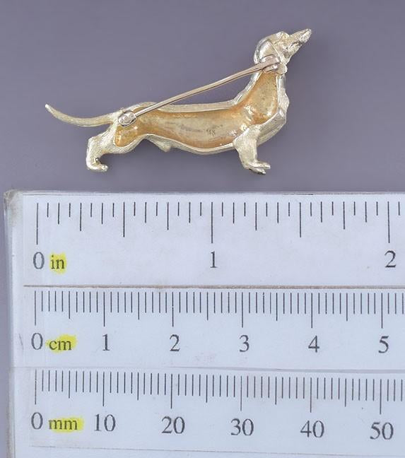 Charming 14k Yellow Gold Dachshund Dog Pin Brooch Florentine Finish