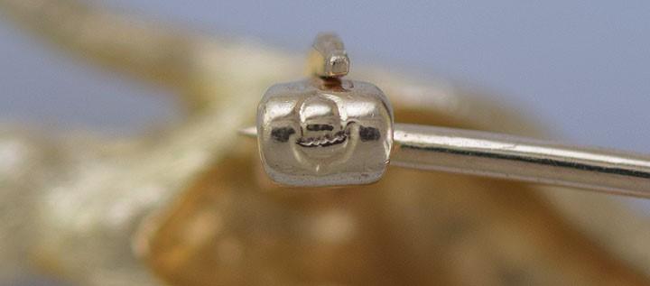 The pin is stamped and guaranteed 14k, as well as a maker's mark we