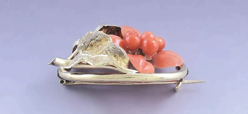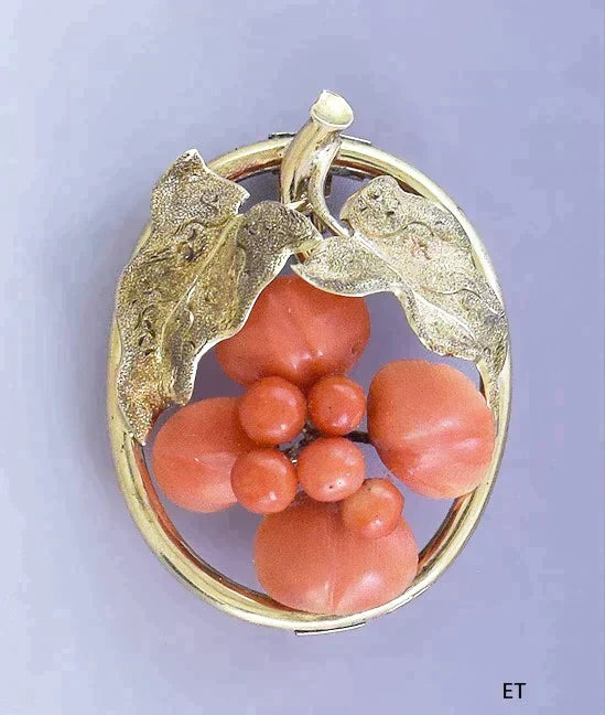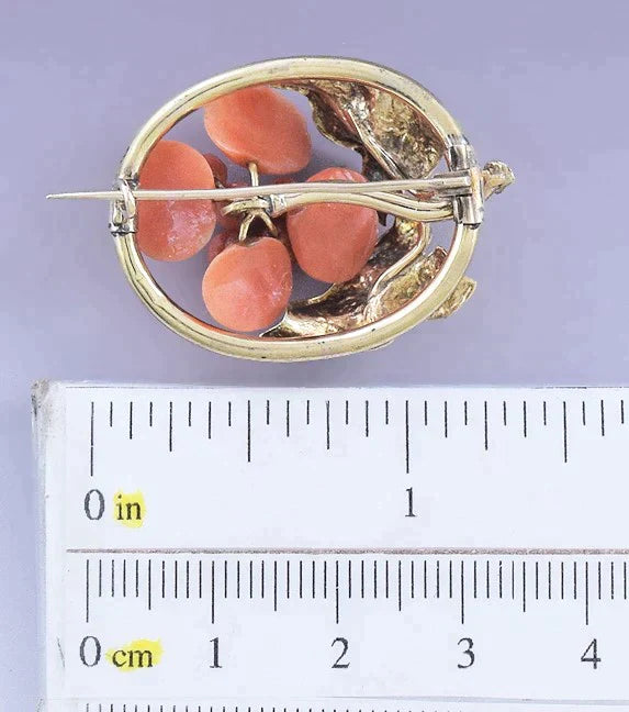 Charming American Victorian 14k Gold & Coral Fruit Pin / Brooch