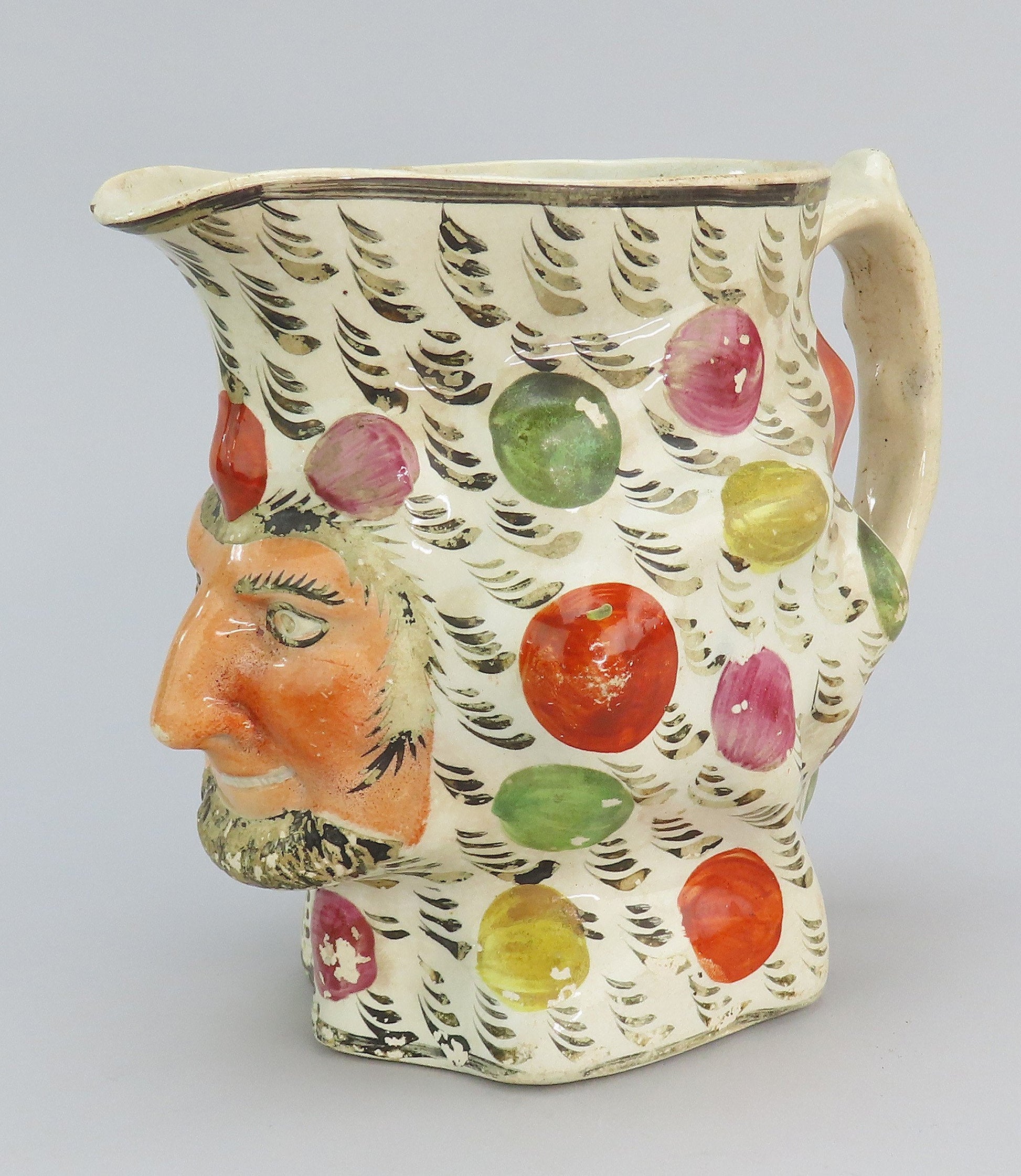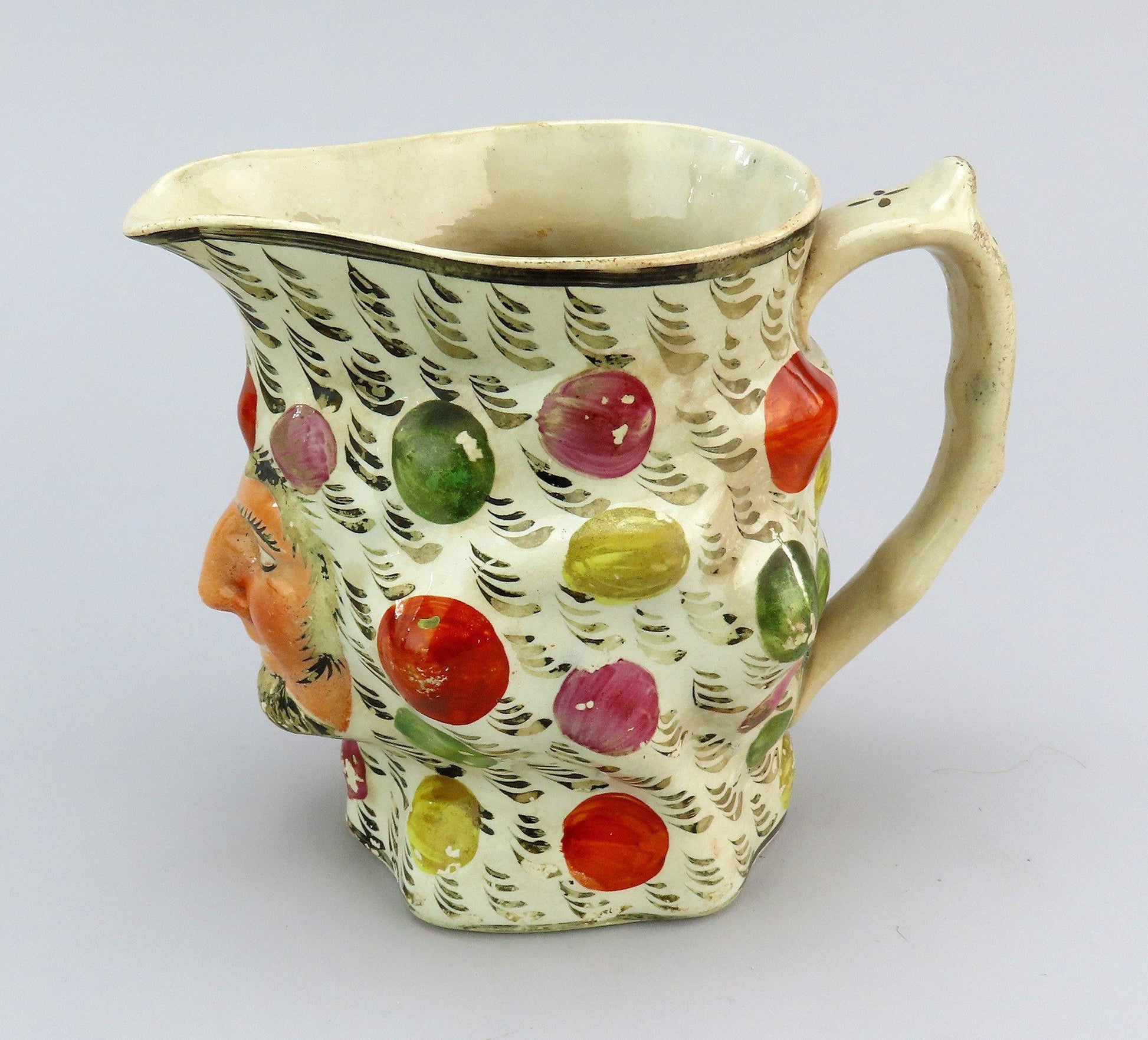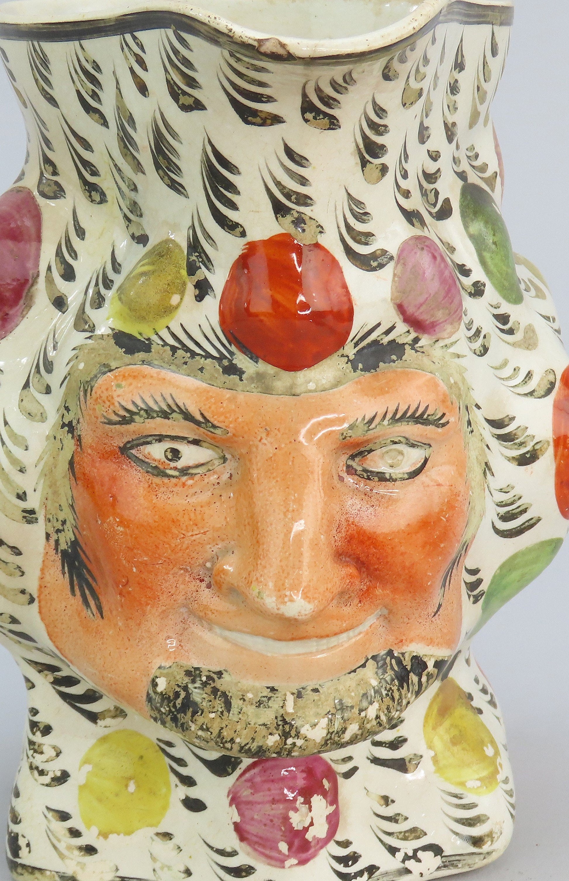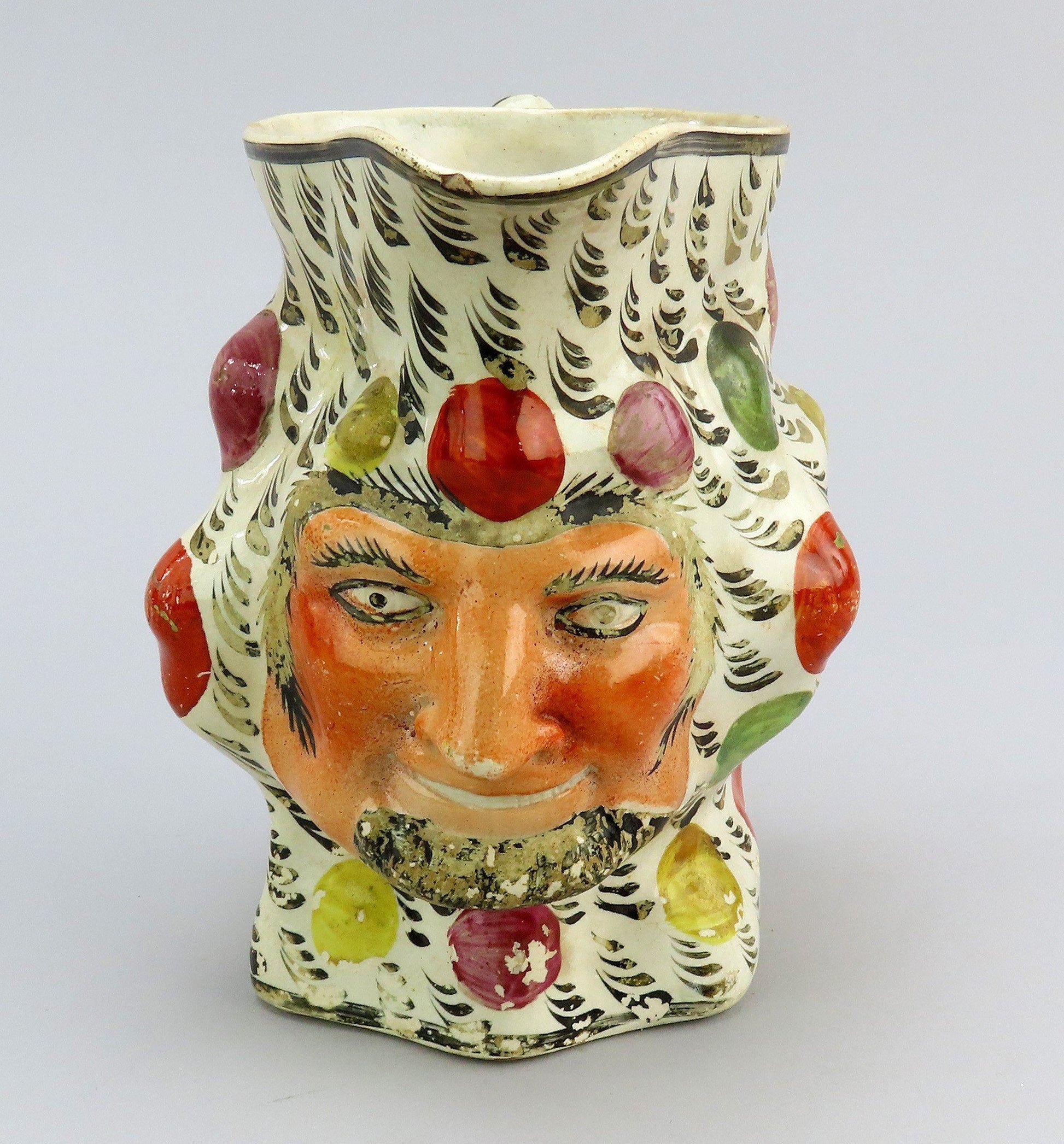Charming c1790 Staffordshire Character Jester Juggler Satyr Face Jug Pitcher