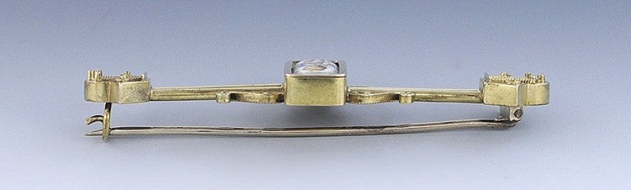This piece is in great condition. There is no damage to the enamel and there are no breaks or repairs to the gold. The brooch is approximately 2.5 inches long.