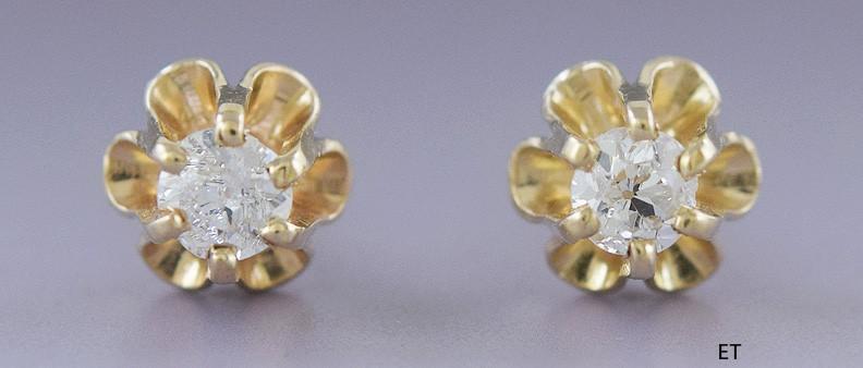 Charming Pair 14K Yellow Gold Diamond Stud Earrings