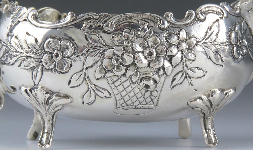 Charming Pair Silver Hanau German Gravy Sauce Boats Basket Flowers Cherub Design