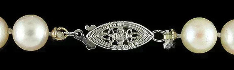 great nacre. The necklace closes with a 14K white gold floral clasp.