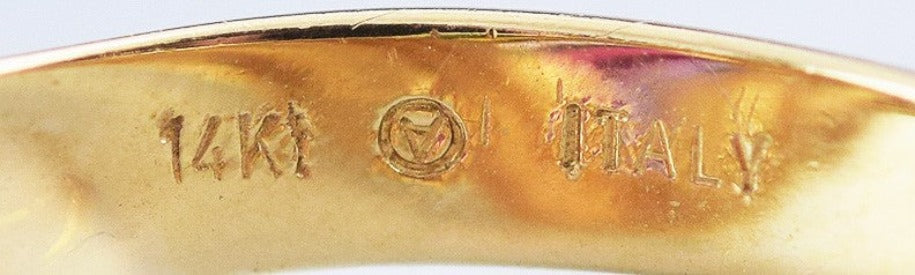 The ring is stamped 14k, Italy, and a maker's mark we unfortunately do not recognize.