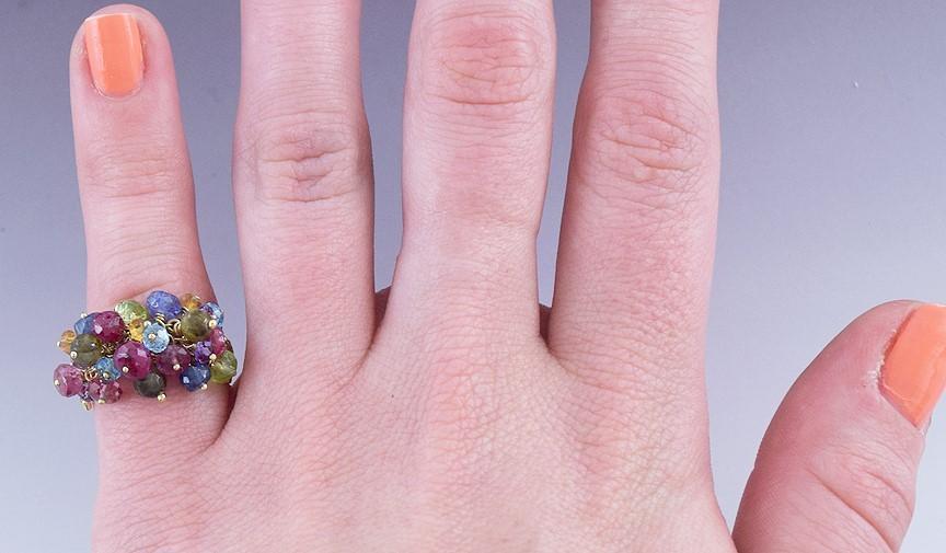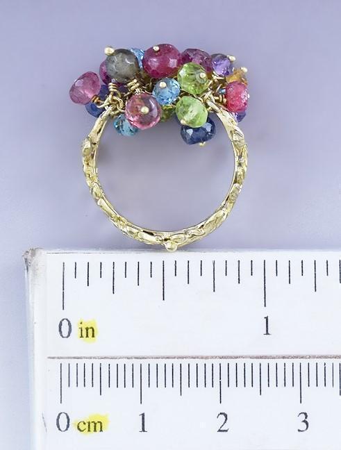 Bright 18k Yellow Gold & Multi Colored Gemstone Bead Fidget Ring Size 6.5
