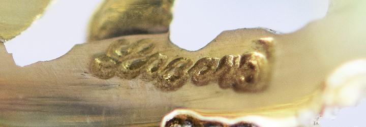The band is stamped and guaranteed 18k and has a maker's mark that looks like