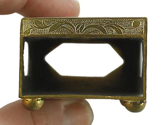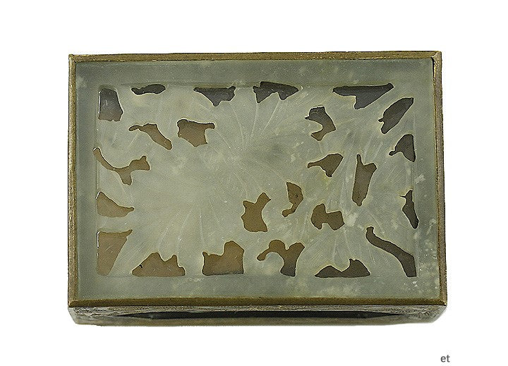 Chinese Brass & Carved Soapstone Talc Floral Matchbox Holder