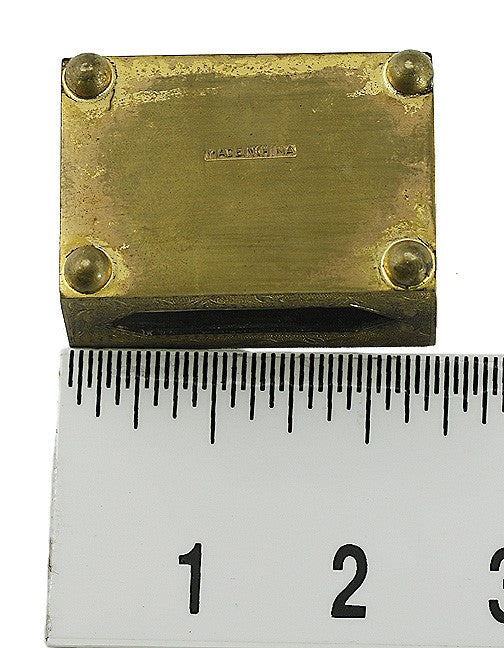 The matchbox holder measures 1 5/8 inches by 2 3/8 inches and 1 inch tall.