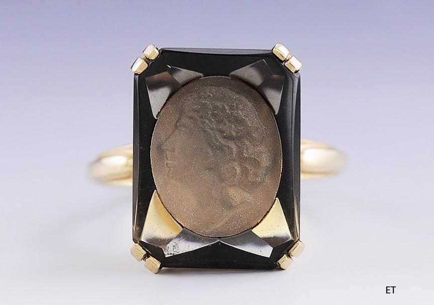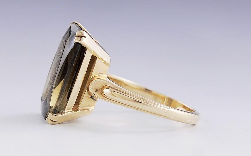 Church Co. 14k Yellow Gold Carved Cameo Smoky Quartz Signet Ring Size 6.75