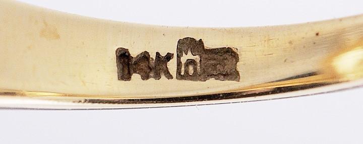 The band is stamped and guaranteed 14k and has a maker's mark for Church & Company.