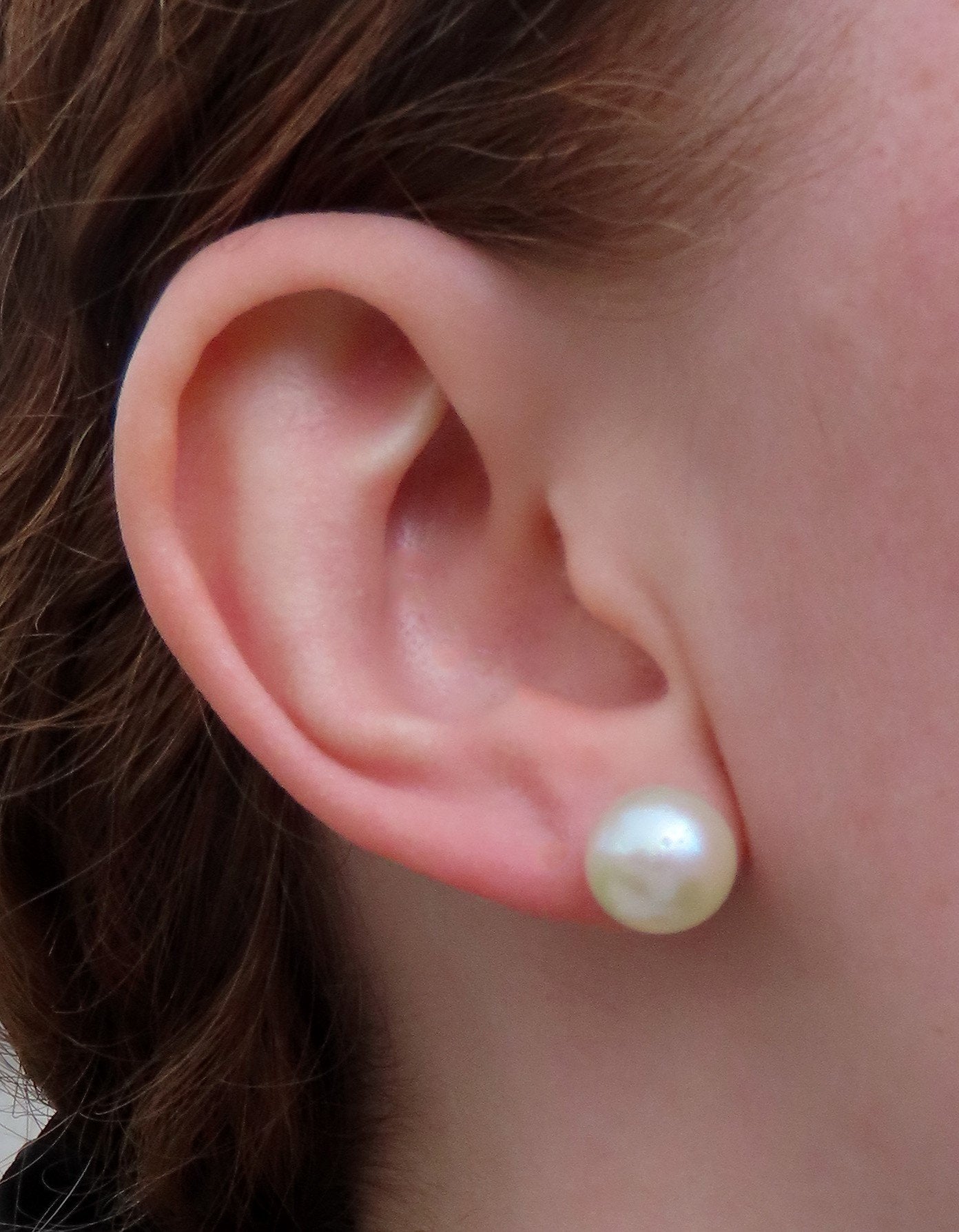 This pair of earrings is in excellent condition. The pearls are clean and well mounted. Some minor variations in surface texture, as can be expected.