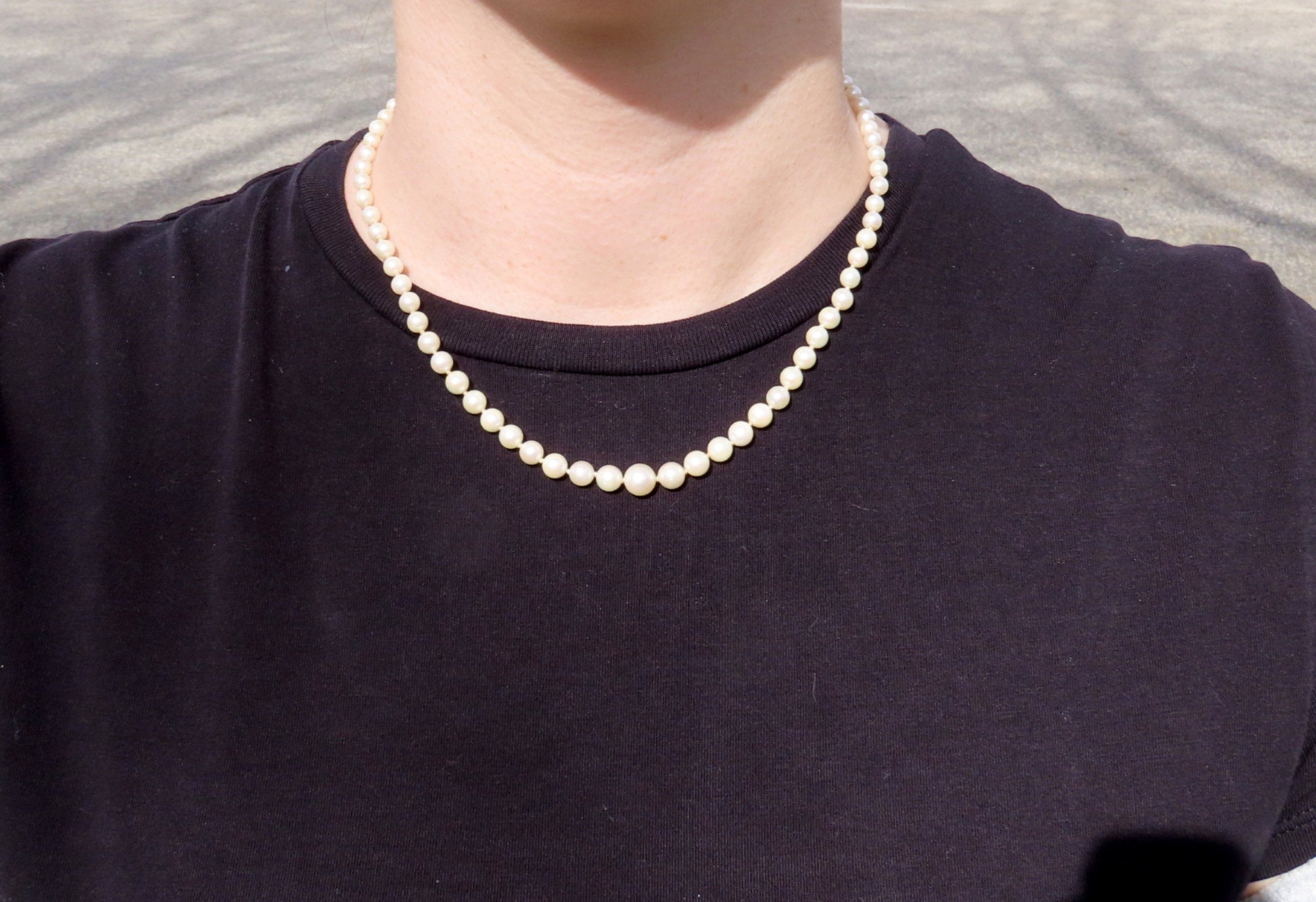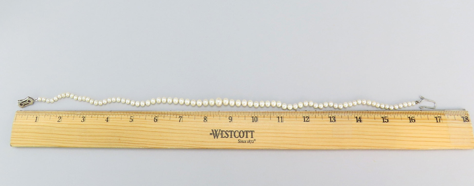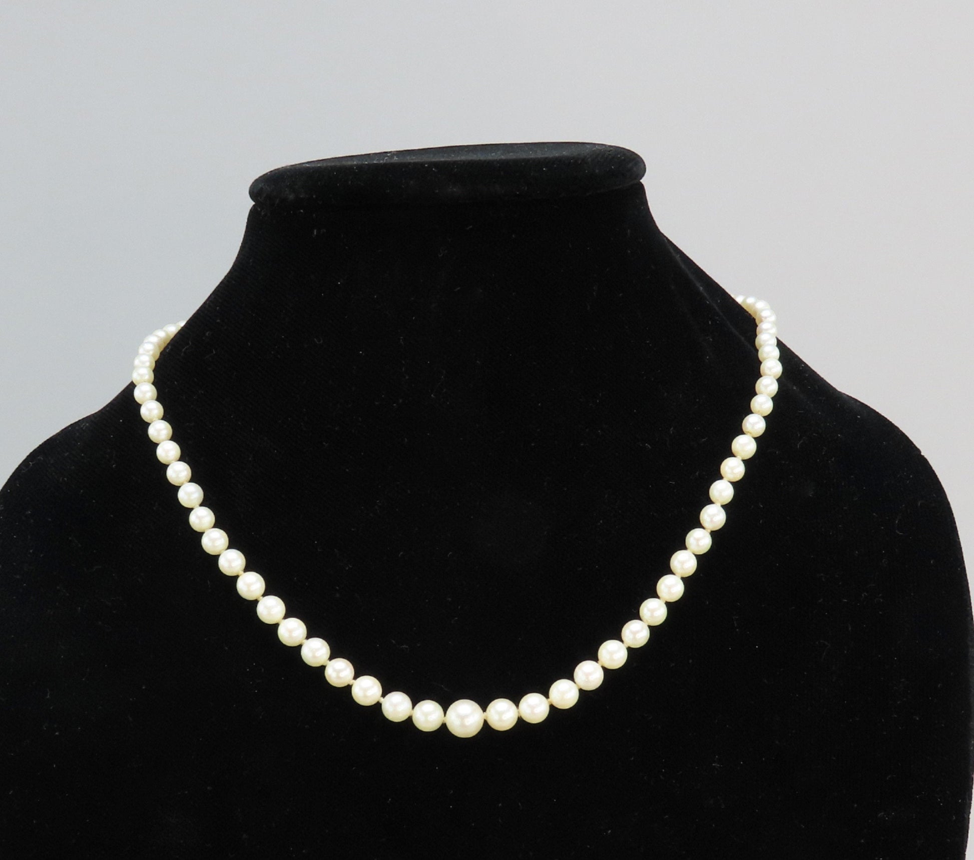 Classic Single Strand Graduated Pearl Necklace w Sterling Silver Clasp
