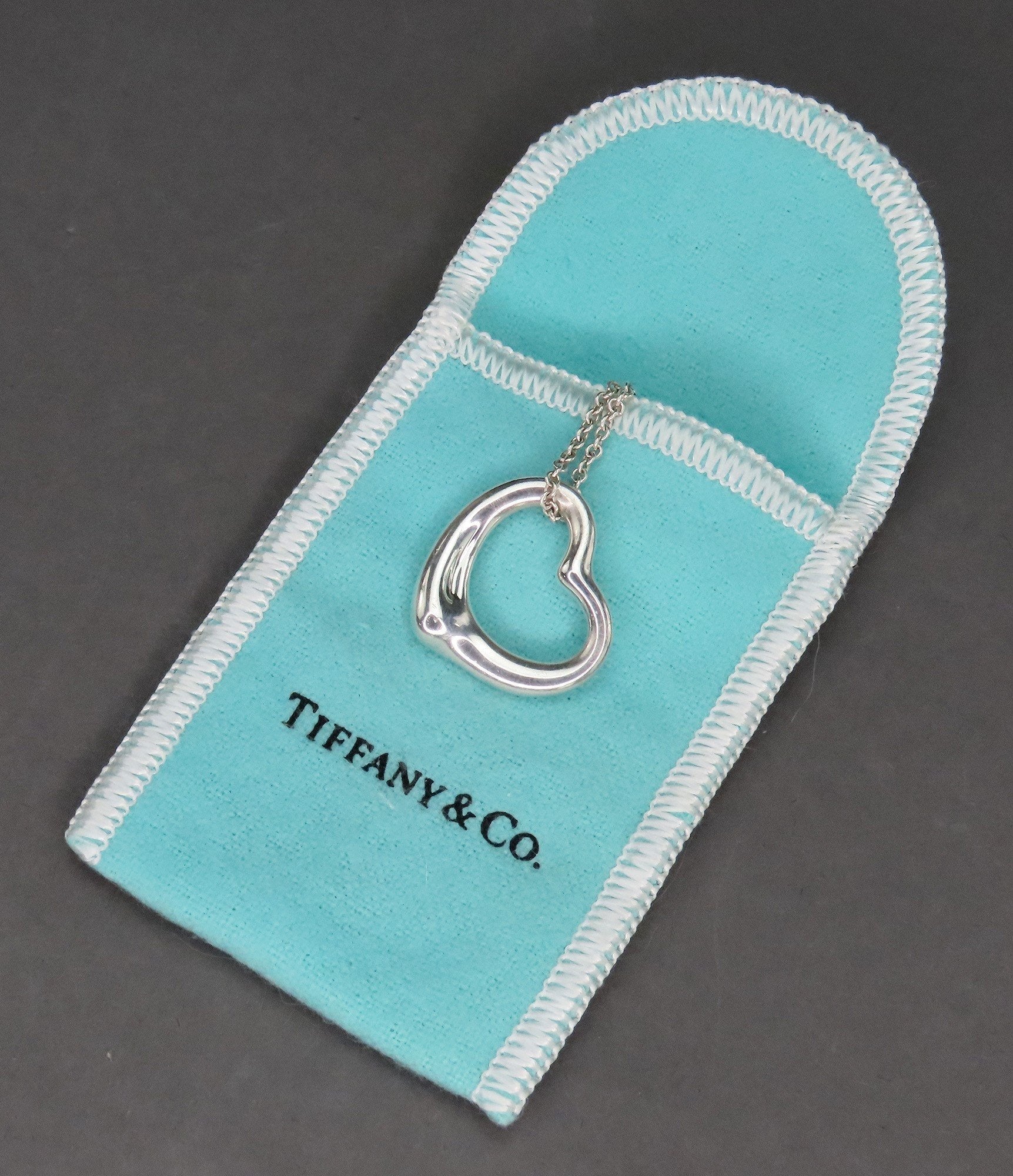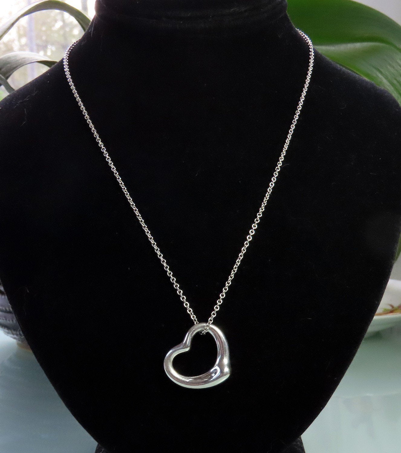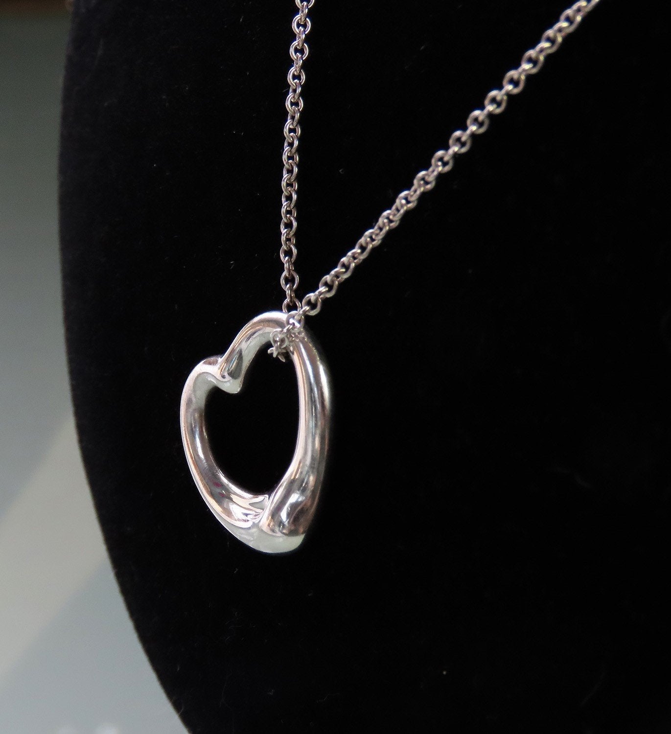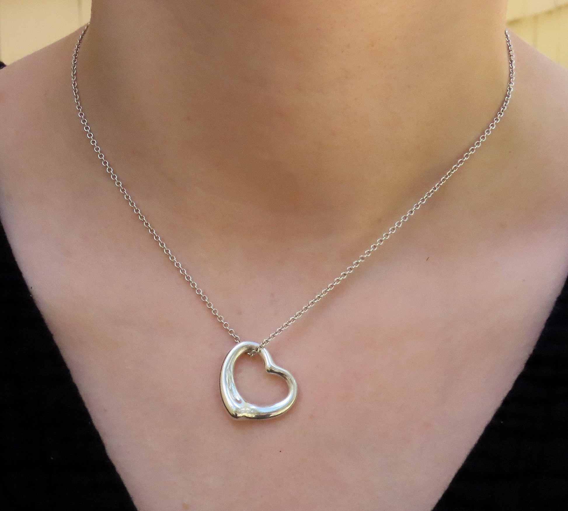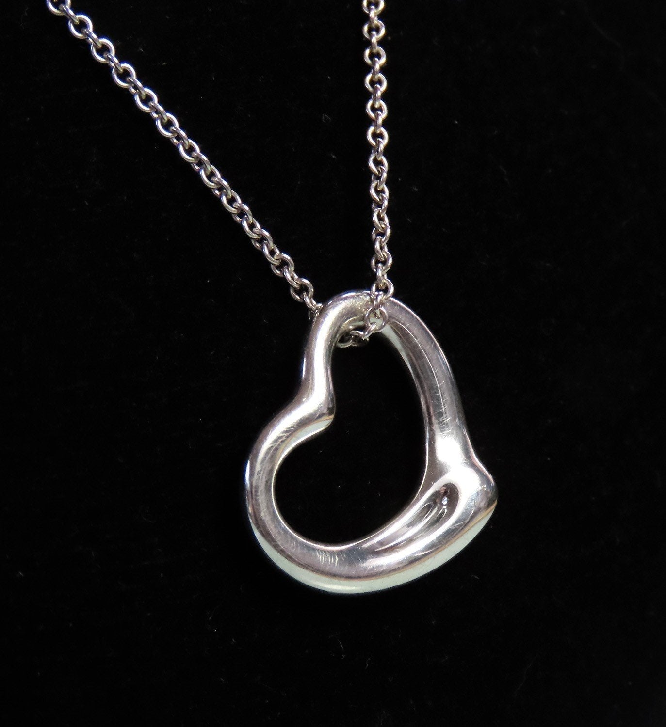 Classic Tiffany Sterling Silver Elsa Peretti Open Heart Pendant 22mm w 16" Chain