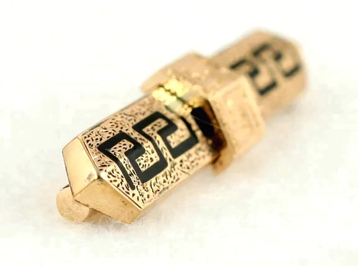 Classical 1880s American Victorian 14K Gold Enamel Greek Key Bar Pin Brooch