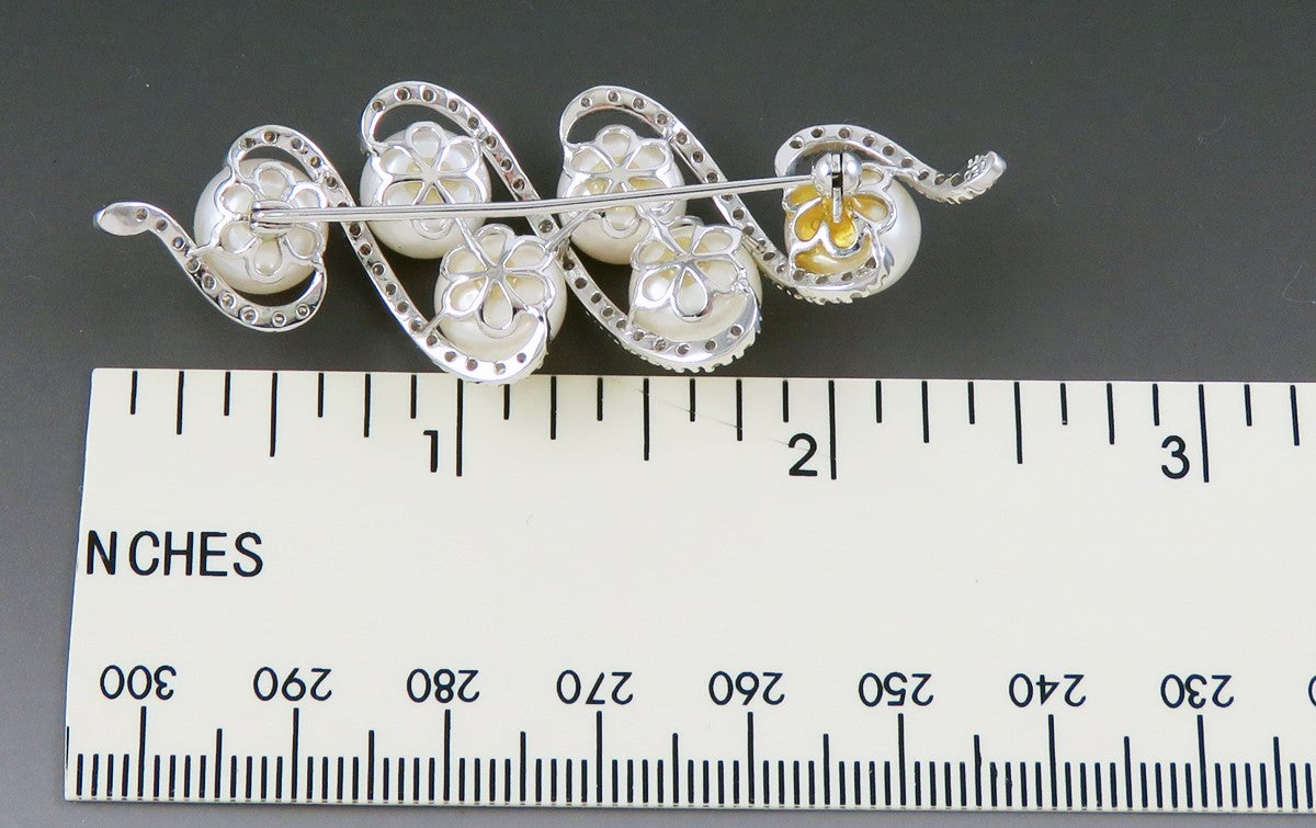 Classy 18k White Gold Diamond ~8.5-9mm Pearl Serpentine Pin Brooch