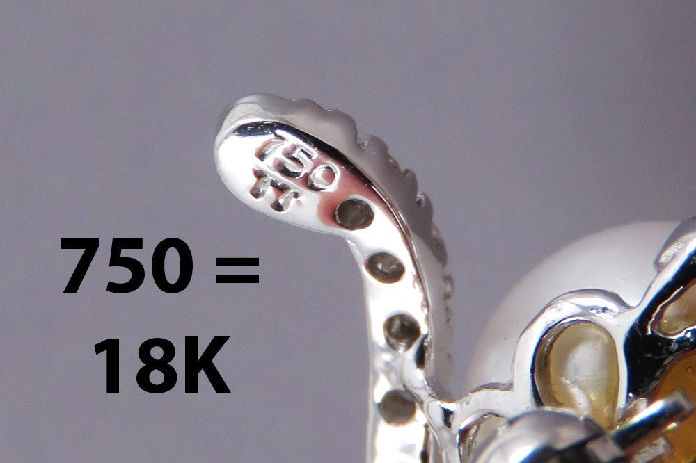 The back of the pin is hallmarked 750 for 18 karat gold as well as a maker's mark of TT.