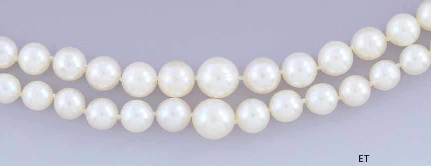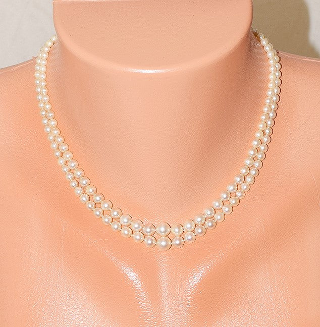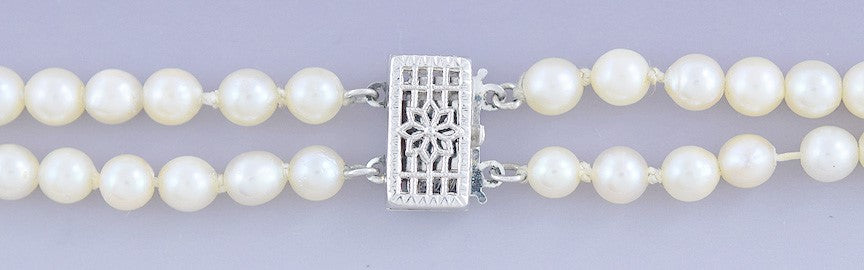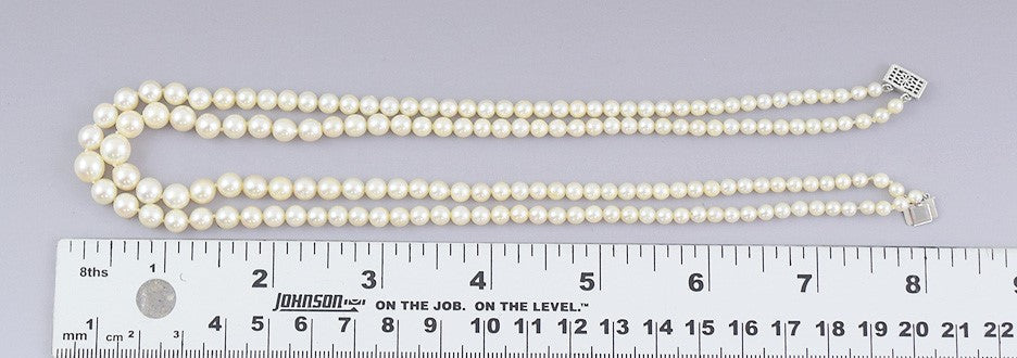 Classy Double Strand Graduated Pearl Necklace w/ 14k White Gold Filigree Clasp