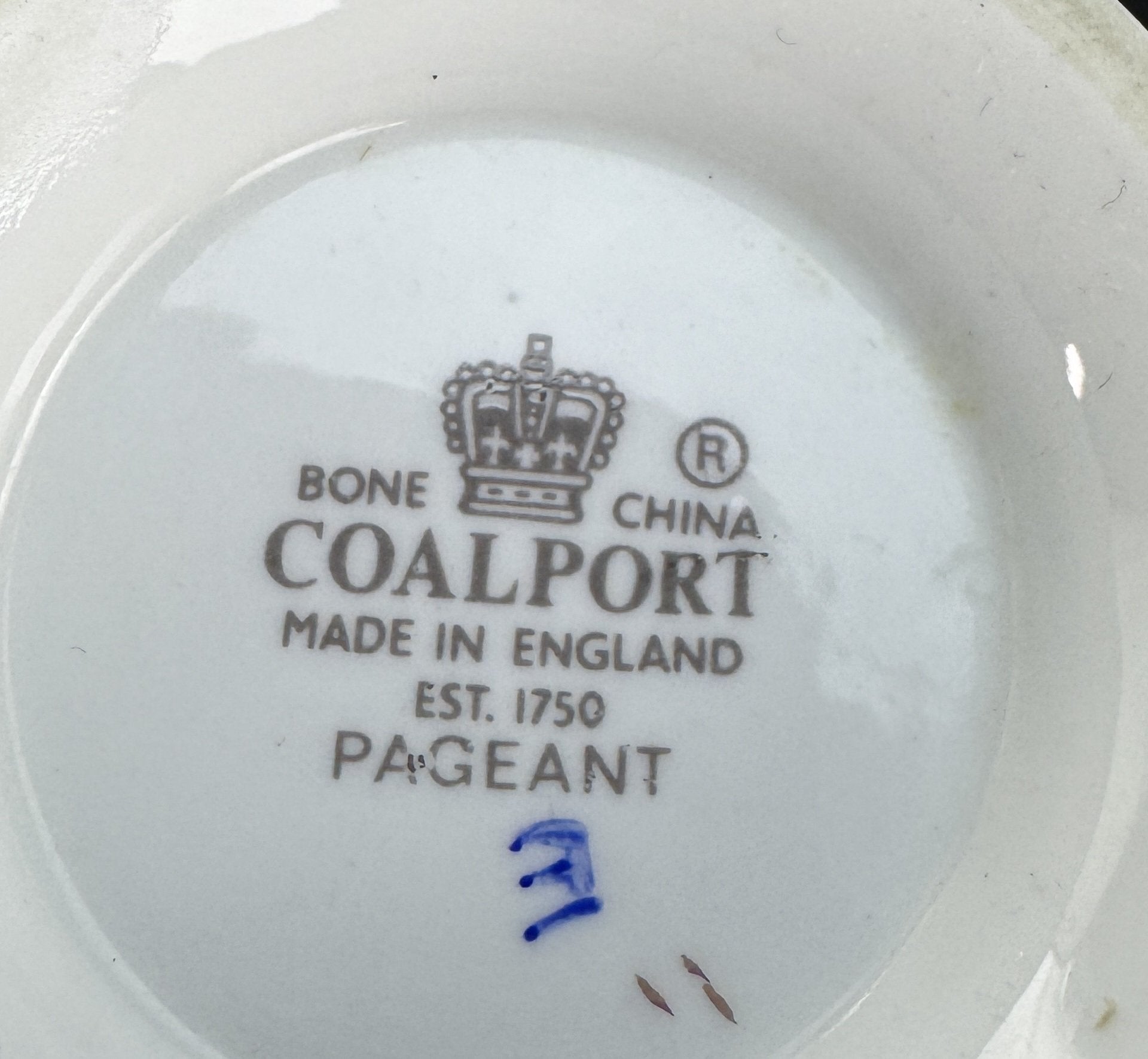This set is in excellent condition. There are no chips, no cracks and no repairs. This pattern is identical to Coalport's Fanfare Japan pattern, except that the edge of the Fanfare Japan pattern is wavy and not smooth. -RS