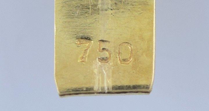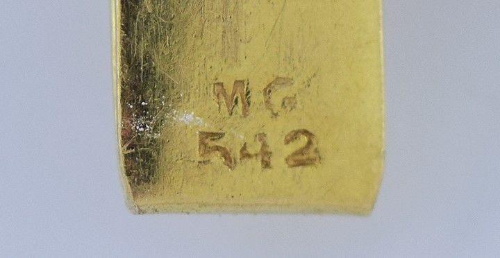 The bracelet is stamped on the tongue of the clasp, with 750 for 18k on one side and a maker's mark of MG and the number 542 on the other.