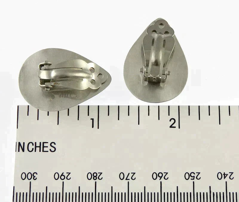 pattern. The earrings have clip on style backs, suitable for wear with pierced