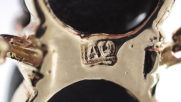 This pin is made in the form of a caterpillar, with the onyx making up the