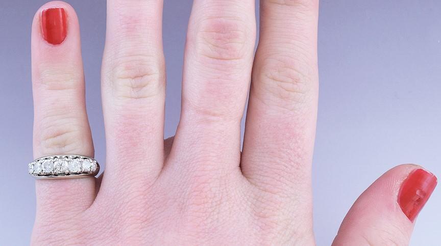 modern ring, made by Baumstein & Feder. The ring is set with 7 diamonds,