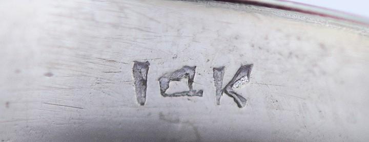 The band is stamped and guaranteed 14k, with a maker's mark for Baumstein